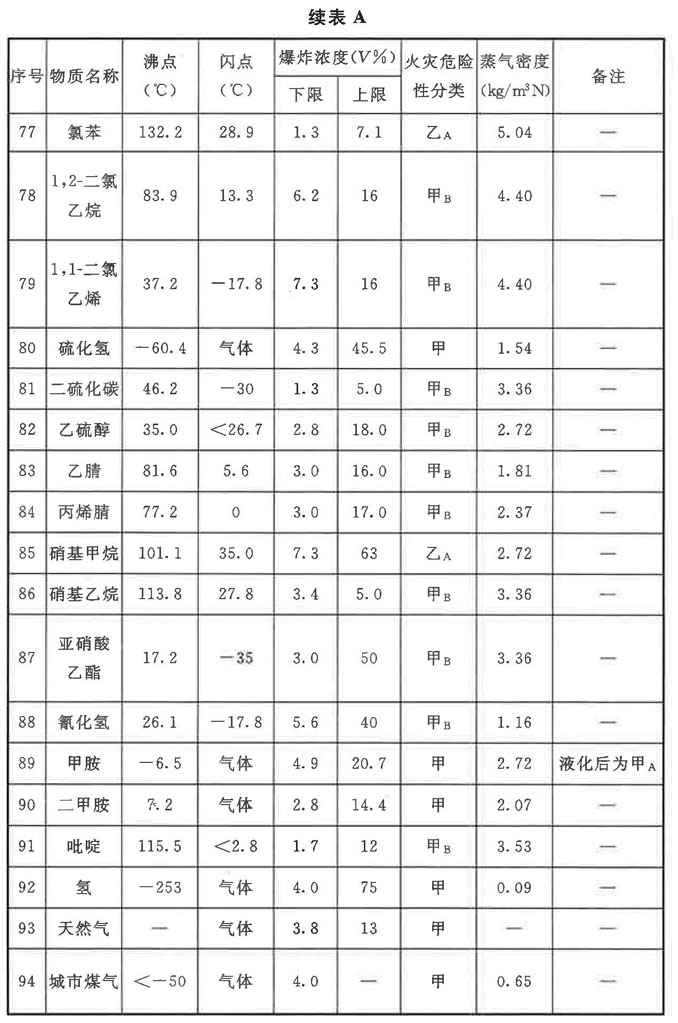 表A中的數值來源以《化學易燃品參考資料》(北京消防研究所譯自美國防火手冊)為主,并與《壓力容器中化學介質毒性危害和爆炸危險程度分類標準》HG/T 20660-2017、《石油化工工藝計算圖表》、《可燃氣體檢測報警器》JJG 693-2011、《爆炸危險環境電力裝置設計規范》GB 50058-2014、《化工過程安全理論與應用》(第二版)進行了對照,僅調整了個別欄目的數值。