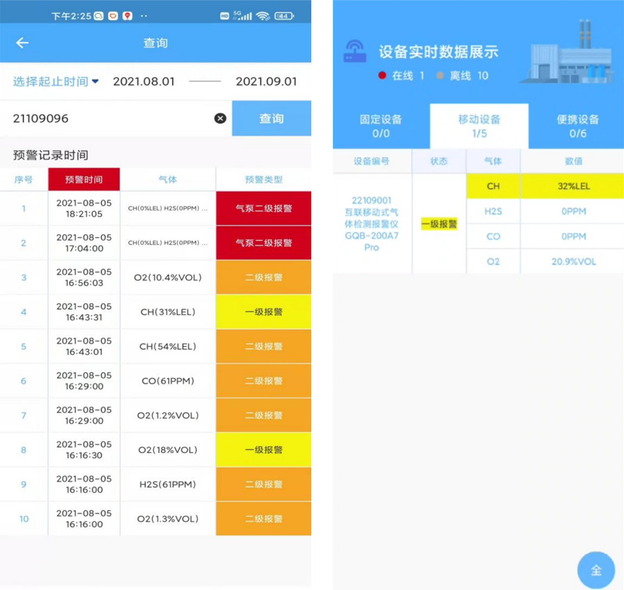 專用的氣體報警器管控平臺界面,將固定式氣體探測器、移動式區域氣體檢測報警儀、便攜式氣體檢測儀、以及移動視頻相融合,通過4G無線上傳的通訊方式,將氣體監測數據和監測視頻上傳至氣體安全智能化管控的軟件平臺。從而為企業綜合管理系統平臺的各種安全分析算法提供了數據;豐富了安全信息數據庫的數據類型,促進了該數據庫有效性建立的達成。